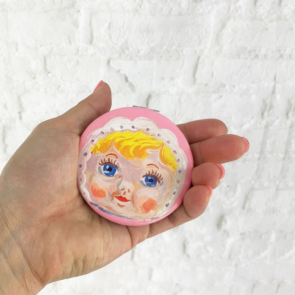 児玉産業(株)製の昔懐かしいソフビ 人形 「なかよしチャーミーちゃん」が フランス人デザイナー・ ナタリー・レテによって描かれた とっても可愛いコンパクトミラー。